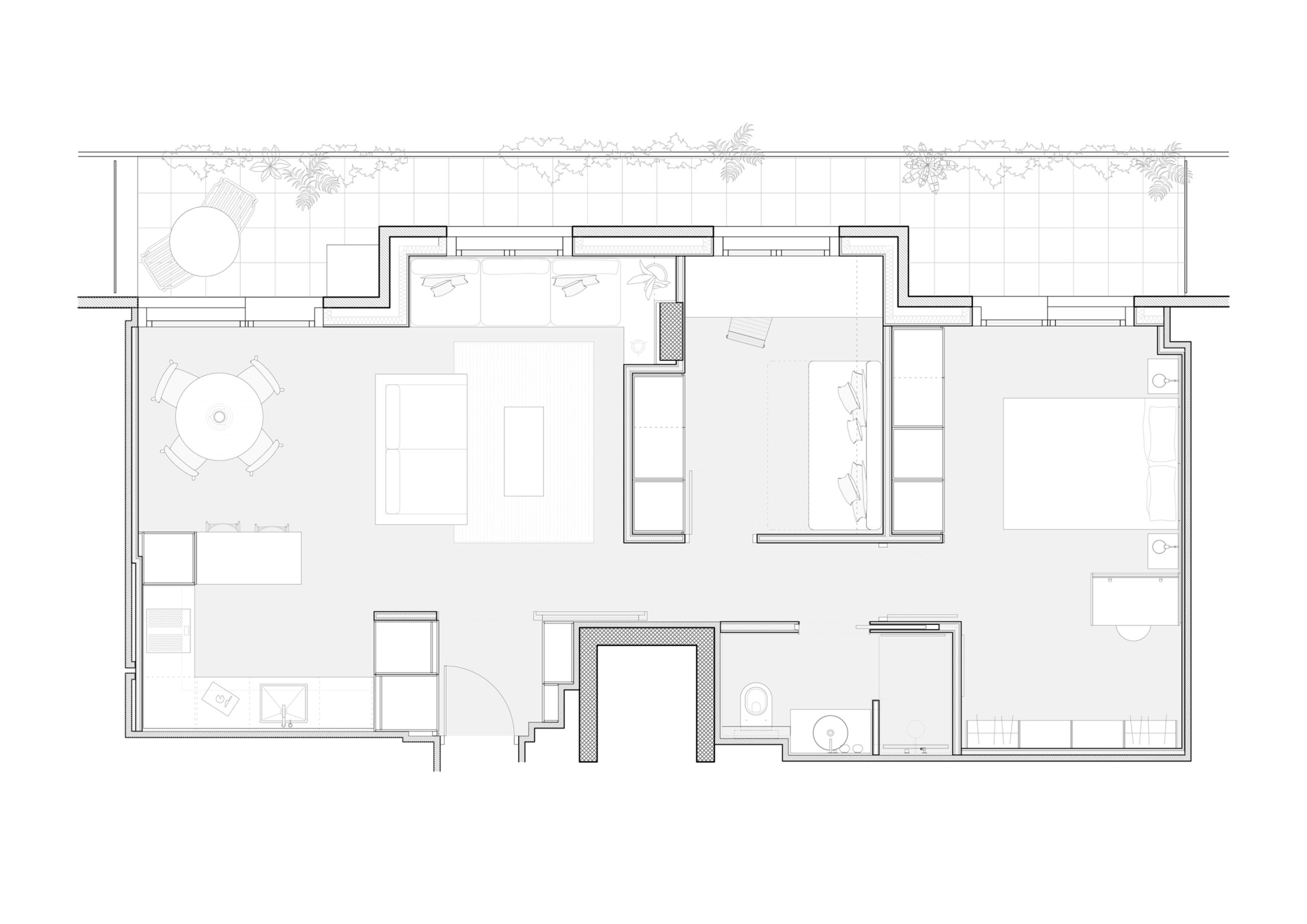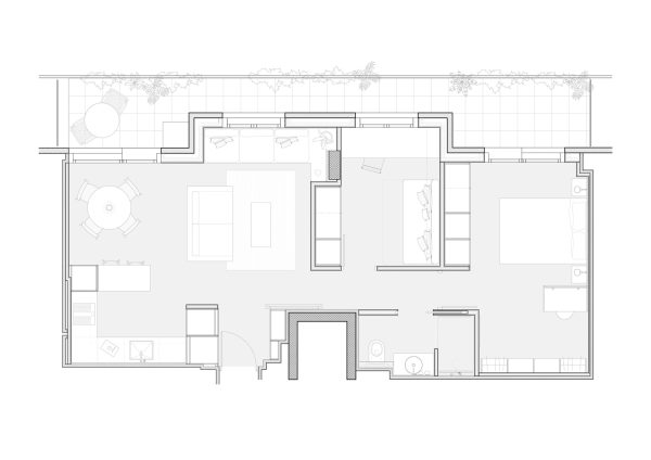 La vivienda se adapta a las necesidades de una pareja joven, y plantea una distribución más limpia en la que todos los espacios ganan amplitud.